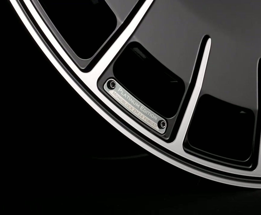 Monoblock ZM "Platinum Edition" – Criada utilizando processos de forjamento e usinagem CNC de última geração para alcançar a estrutura leve e de alta resistência. Esta roda forjada sob medida impressiona com seu design arrojado do disco central em preto e seus 20 raios polidos. O visual esportivo da roda é complementado por uma calota central com trava central.