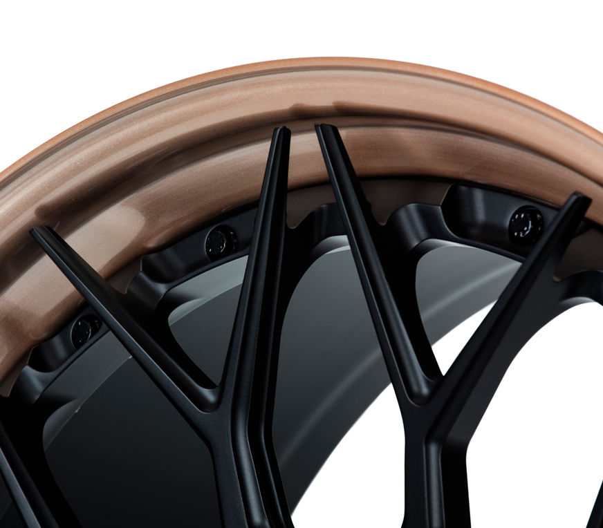 Seu design apresenta uma proposta agressiva e altamente refinada, combinando elementos de malha com raios divididos que criam um visual técnico e contemporâneo. A construção em três peças permite maior liberdade estética e estrutural, proporcionando diferentes níveis de profundidade e concavidade, desde perfis mais sutis até configurações extremamente profundas, resultando em um conjunto visual imponente e exclusivo, perfeitamente alinhado com projetos de alto padrão.